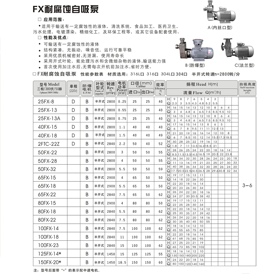 不銹鋼耐腐蝕自吸泵100FX-14